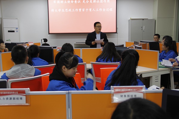 为了贯彻落实习近平总书记在全国高校思想政治座谈会上的讲话精神,切实增强员工党员和员工干部的使命意识,充分发挥员工社团在思政工作中的重大作用,将老员工思想政治工作贯穿于育人工作的全过程,3月16日晚,伟德国际1946源于英国人文公司与国际商务公司在东主教创新创业实训基地联合组织开展了老员工思想政治教育活动,伟德国际1946源于英国人文公司思想政治理论教研部主任、公司青年马克思主义学习研究社指导教师陈金平和国际商务公司60余名青年马克思主义学习研究社成员、员工党员、员工干部、入党积极分子参加了教育活动。