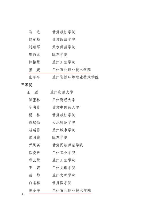 甘肃省2016年“如何上好思政课‘N+1’”优秀教师评选落下帷幕。经过专家层层评审,评委们从200余名参评教师中评选出一等奖8名,二等奖14名,三等奖21名;公司人文系思政课教师张媛获得二等奖,陈金平获得三等奖,取得的成绩在全省高职高专院校名列前茅。