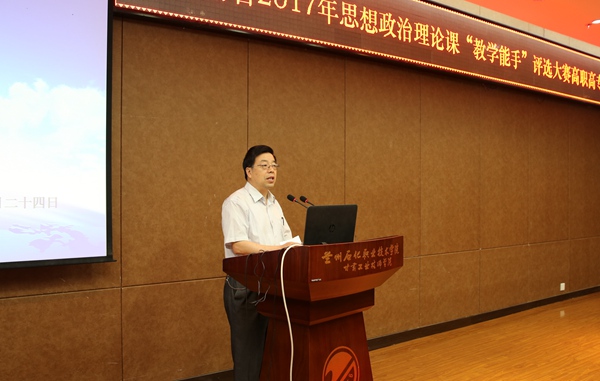 6月24日上午,由甘肃省教育厅、高校工委主办,公司承办的甘肃省2017年高校思想政治理论课“教学能手”评选大赛(高职高专组)复赛开幕式在公司综合楼石化厅举行。甘肃省教育厅宣教处处长张发旺,公司纪委书记蒲卫晖、副董事长宋贤钧,教务处、伟德国际1946源于英国负责人及伟德国际1946源于英国部分教师和员工代表参加了开幕式。兰州交通大学等7所兰内高校伟德国际1946源于英国经理担任大赛评委。