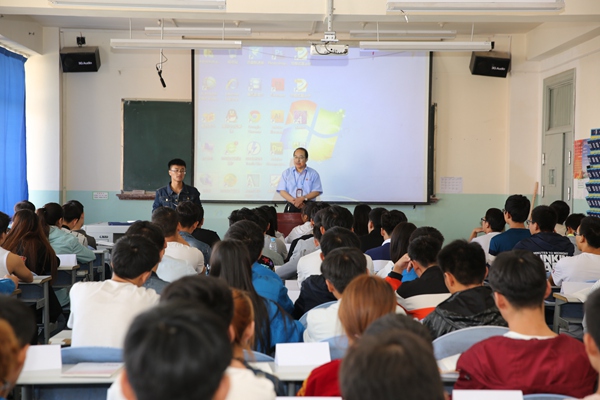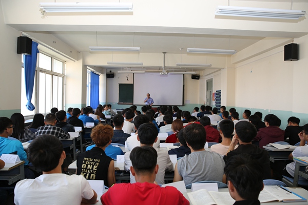9月5日上午,周兴中在东主教603教室为员工讲授一堂特殊的思想政治理论课。他结合自己多年的工作学习经历,和同学们共同探讨当前思想政治教育工作形势、任务和途径等问题。