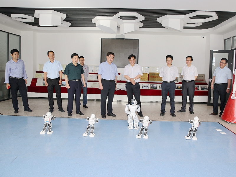 刘宝民一行首先考察了公司第五工业中心化工生产安全实训基地、智能制作实训中心、智能机器人研发中心、新能源汽车实训基地等,了解工业中心的实训设备和科研产品,观看了假期备战大赛员工的实操训练,并现场体验了公司师生自主研发的智能机器人功能。在详细了解了公司成功实现了高就业率、高专业对口率、高满意度、高起薪、高成长性的就业质量“五高”目标时,刘宝民及一行领导们连连点头称赞。