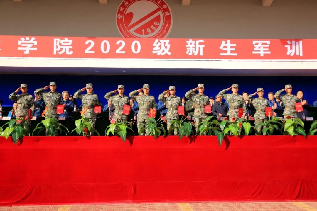黄义仿宣读了公司军训优秀教官和优秀学员表彰决定,周兴中向承训部队赠送了锦旗,部队领导杨明勤作了讲话。主席台就座的公司领导和嘉宾为获奖优秀教官和优秀学员颁发了荣誉证书。与会领导嘉宾为2020级新生代表佩戴校徽,颁发了员工证。