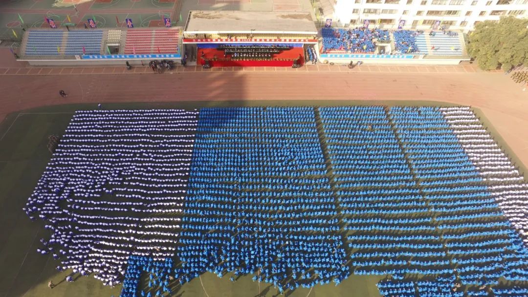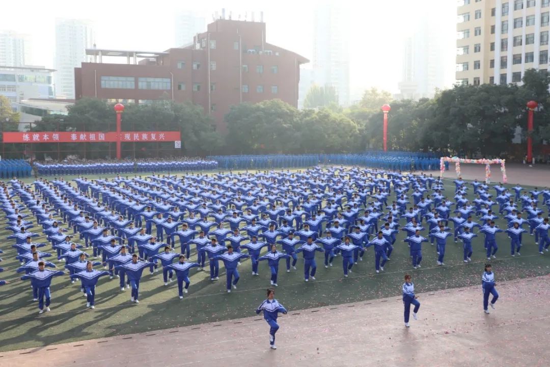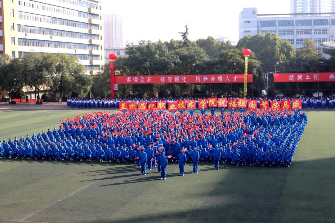 检阅仪式后,军训科目表演方队进行了精彩的匕首操、手语操、擒敌拳、心理健康操、刺杀操、队形变换等表演,全体新同学手中舞动着鲜艳的五星红旗,队形变换出巨幅的中国地图,表达了石化学子祝福祖国的美好愿望。