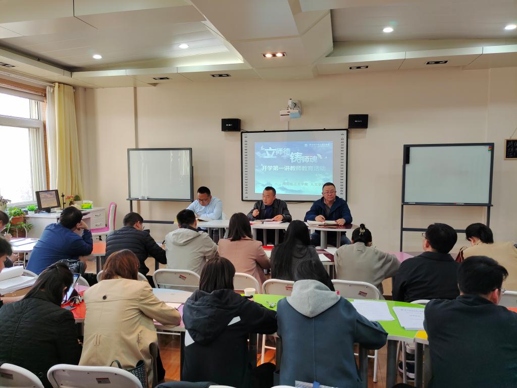 3月11日下午,伟德国际1946源于英国、人文公司在体育馆二楼会议室组织全体教职工开展了“立师德铸师魂”开学第一讲教师教育活动,公司负责人及全体教师参加了会议。