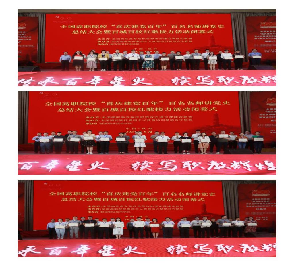 6月19日—20日,由教育部职业教育与成人教育司指导,中国高等教育学会职业技术教育分会、全国高职院校爱国主义教育培训基地合作联盟共同发起,全国高职高专院校思想政治理论课建设联盟主办,全国高职院校爱国主义教育培训基地合作联盟协办的全国高职院校“喜庆建党百年”百名名师讲党史总结大会暨百城百校红歌接力活动闭幕式在革命圣地延安举行,来自全国80余所高职院校领导和师生代表300余人参加了本次大会,公司纪委书记蒲卫晖,伟德国际1946源于英国思政课教师钱镜伊、叶婷参加了会议。