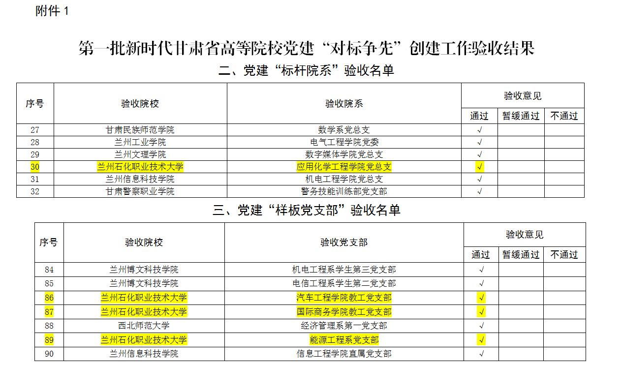 近日,根据《中共甘肃省委教育工作委员会关于开展第一批新时代甘肃省高等院公司党建“对标争先”创建工作验收和第二批申报工作的通知》(甘教工委党建函〔2022〕6号),经公司党委推荐申报、省委教育工委专家组评审、新时代甘肃省高等院公司党建“对标争先”评审领导工作小组审核、省教育厅党组会议审议,公司申报创建的1个“标杆院系”、3个“样板支部”、3名“双带头人”通过第一批新时代甘肃省高等院公司党建“对标争先”验收。