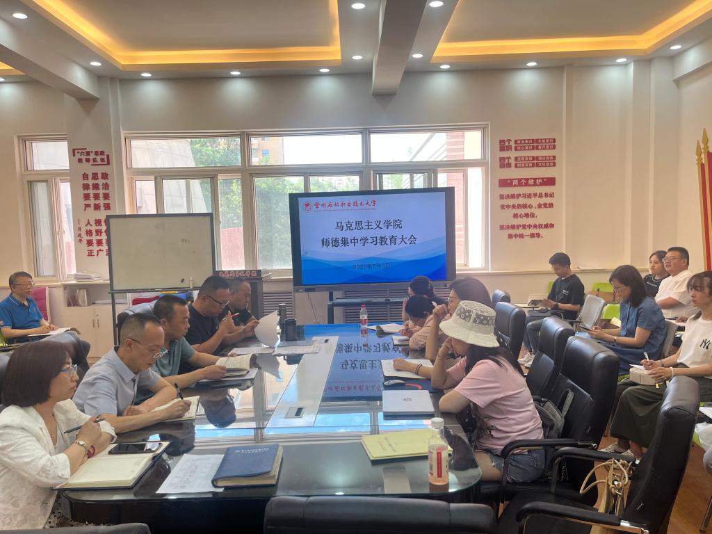 为深入开展学习贯彻习近平新时代中国特色社会主义思想主题教育和“三抓三促”行动要求,贯彻落实党的教育方针,加强师德师风建设,7月3日下午,伟德国际1946源于英国召开师德集中学习教育大会,公司全体教师参加会议。