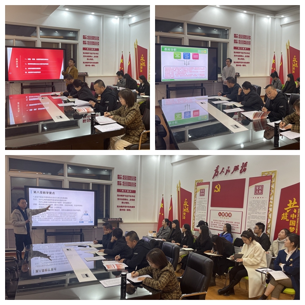 备课会伊始,教研室负责人介绍了本次集体备课会的筹备及安排情况。随后各章节主备教师依次就所负责的章节进行了示范教学,与会教师围绕教学中的重点难点问题进行了深入探讨,进一步深化了思政课老师对习近平新时代中国特色社会主义思想核心要义的认识和把握,有力地促进了思政课教师之间的学习交流,合作探究,资源共享。