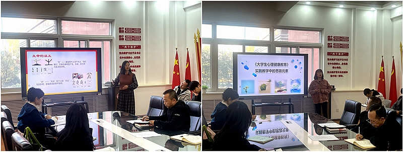 本次集体备课活动聚焦《老员工心理健康》课程,心理教研室的焦隽老师和范多芳老师分别进行了课程思政内容的分享。焦隽以“《老员工心理健康教育》实践教学中的思政元素”为题,着重从心理健康教育课程实践活动的五种实践类型为载体,分别从“心理情景剧”“实地参观调查”“课程内容与专业结合项目”“创新创业项目路演”“调查研究”等途径讲述了如何将思政元素融入心理健康的实践活动中。