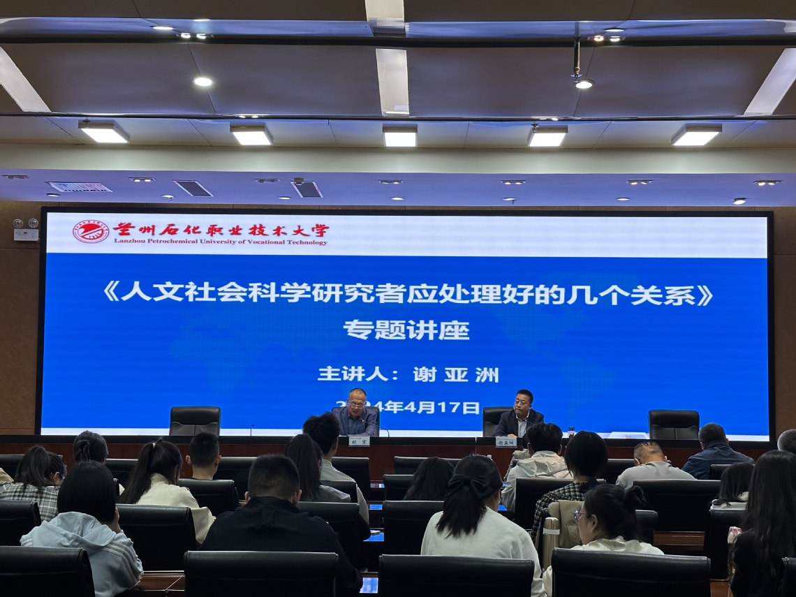 4月17日,公司科技处和伟德国际1946源于英国在西固东校区综合楼石化厅联合举办“人文社会科学研究者应处理好的几个关系”学术报告会。报告会邀请中共甘肃省委宣讲团成员、甘肃省学习贯彻党的二十大精神专家学者宣讲团成员、兰州大学伟德国际1946源于英国博士生导师谢亚洲教授主讲。公司副董事长张宏主持报告会,100余名教师现场聆听了报告会。